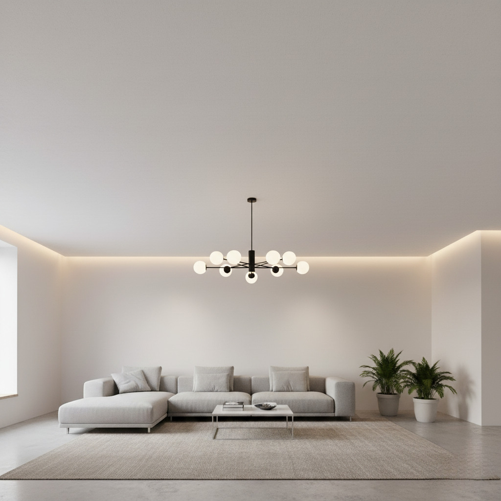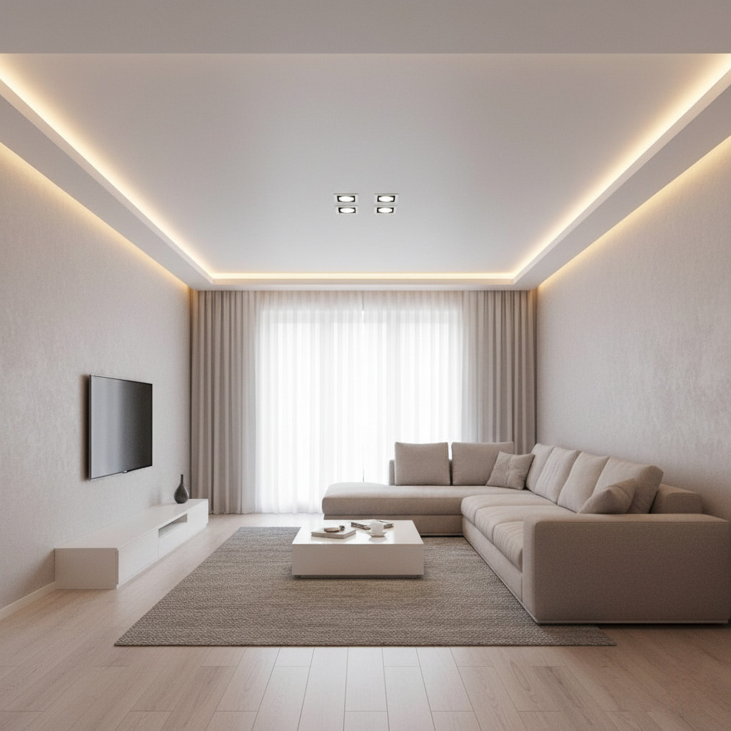 Не стоит переживать, что уровень заметно упадет. Профили подвинут линию чистовой поверхности на 3-4 см. Если есть дополнительные неровности стен или перекрытия, которые надо замаскировать, возможно, больше.